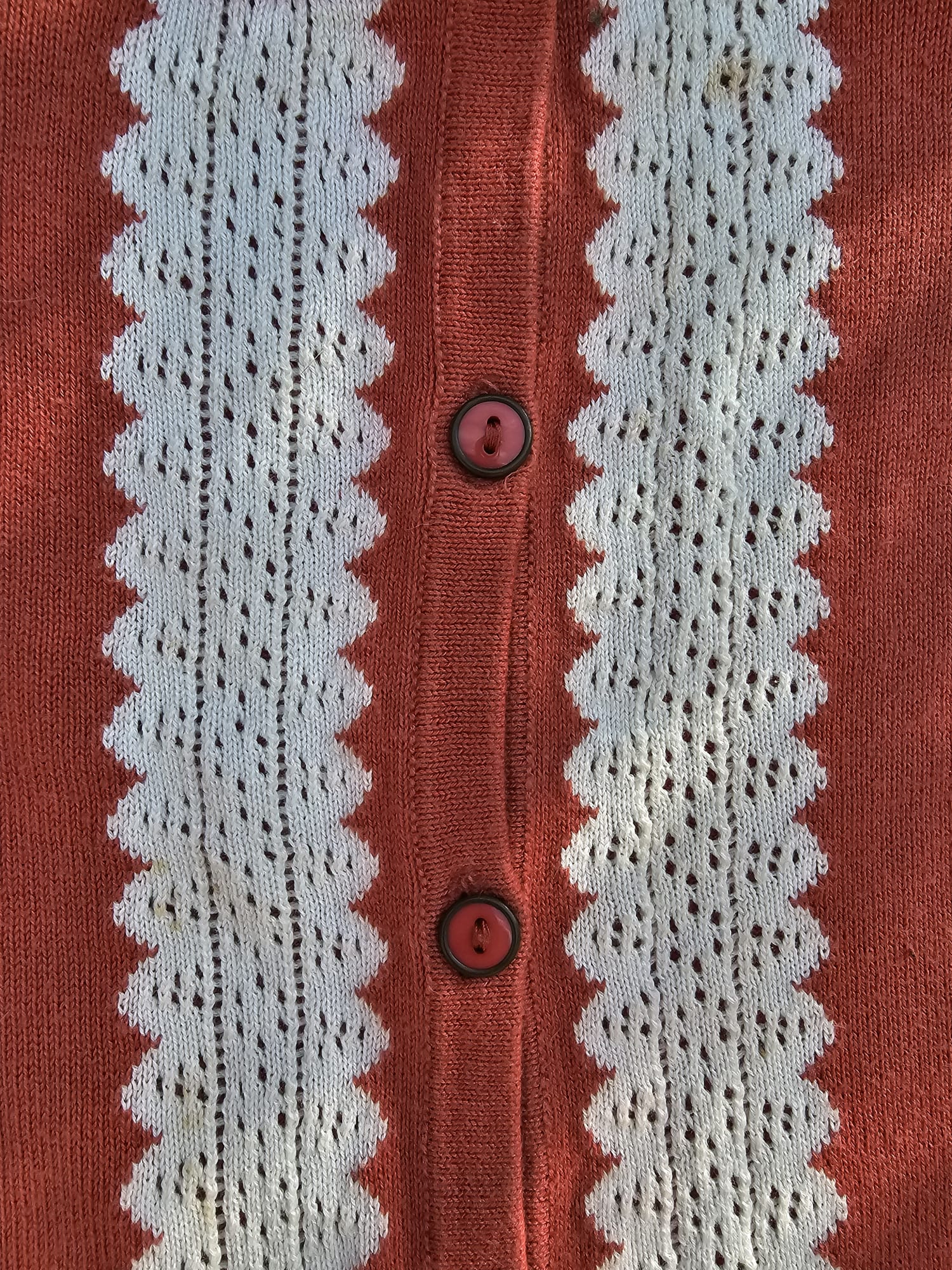 Saquito en color ladrillo, 100% algodón, con detalle en blanco en frontal. Marca: Lolita. Talle: M