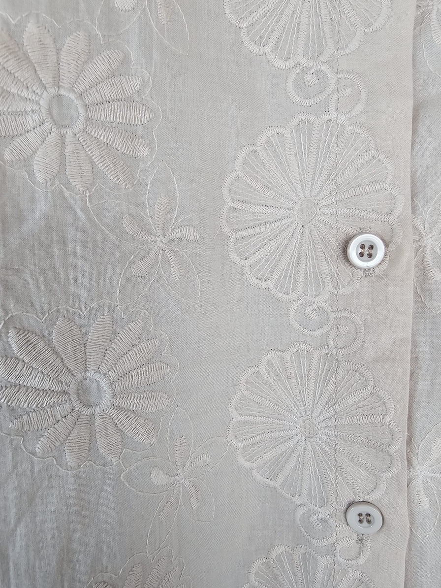 Sobre camisa en algodón acrílico bordado, en color beige. Talle: (en etiqueta XL, pero realmente L)