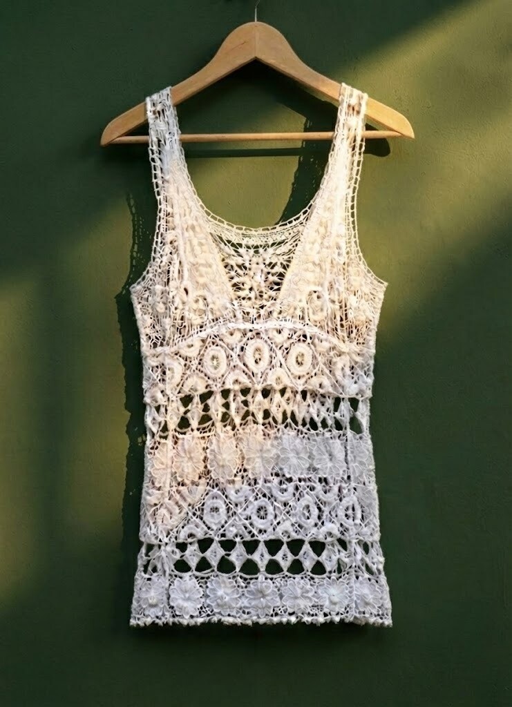 Musculosa larga (estilo mini vestido), en encaje de algodón blanco. Talle: S